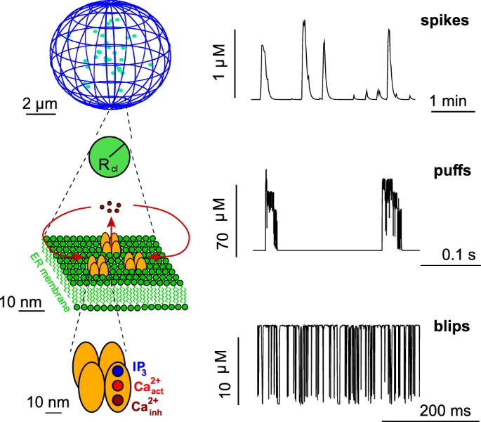 在理论生物学中,系统建模必须在模型刻画的精细程度、模型复杂度和建模目的之间达到平衡。由于该领域的建模缺乏明确的第一性原理(first principle),因此,从建模对象对应的数学结构出发来设计模型方程十分重要。否则,得到的模型可能缺乏可推广性。目前只有少数细胞动力系统能够被表征到足以识别对应数学结构的程度,胞内钙离子动力学便是其中之一。