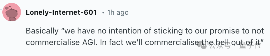 网友总结:基本上,“我们无意坚守不将 AGI 商业化的承诺。事实上,我们会把它商业化”。