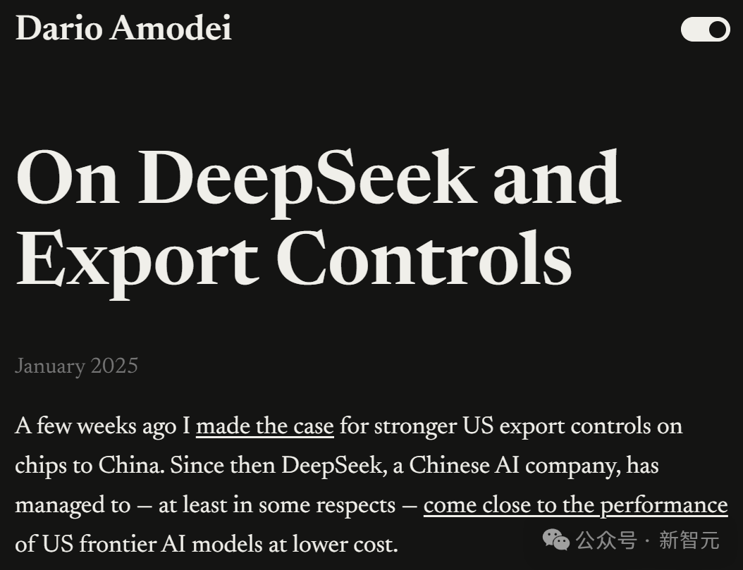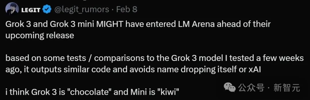 不只是Hassabis,马斯克也在前几天举行的WELT经济峰会访谈中表达了类似观点。这次访谈中,当被问道DeepSeek R1是否是AI领域的一次彻底革命时,马斯克明确表示,「不是,xAI和其他一些公司很快就会发布比DeepSeek更好的模型」。X上已经有网友开始爆料,马斯克所口中的「更好的模型」很可能就是即将发布的Grok 3。据传新的Grok 3模型在代码和创造力方面比上一代模型要好得多。其中代号为「chocolate」的版本感觉像是完整版,而另一个代号是「kiwi」的版本像是迷你版或者是量化的版本。马斯克在访谈中还表示,「中国有很多非常聪明、非常有驱动力的工程师。你应该预料到中国会创造出许多伟大的东西,而且他们已经创造出了许多伟大的东西。」他强调,在人类历史的大部分时间里,中国一直是世界上最强大的国家。在谈到AI的开源问题时,马斯克认为,开源模型通常落后于商业模型。但他同时强调,今天商业上强大的模型,可能再过一年或更短的时间内就会开源。「我预计这种趋势会持续下去。所以,基本上每个人都将拥有AI。」马斯克已经为Grok 3造势好长一段时间了,所以此次对DeepSeek的点评,也不排除是继续为Grok 3造势。Anthropic CEO长篇檄文:DeepSeek缺乏研究价值