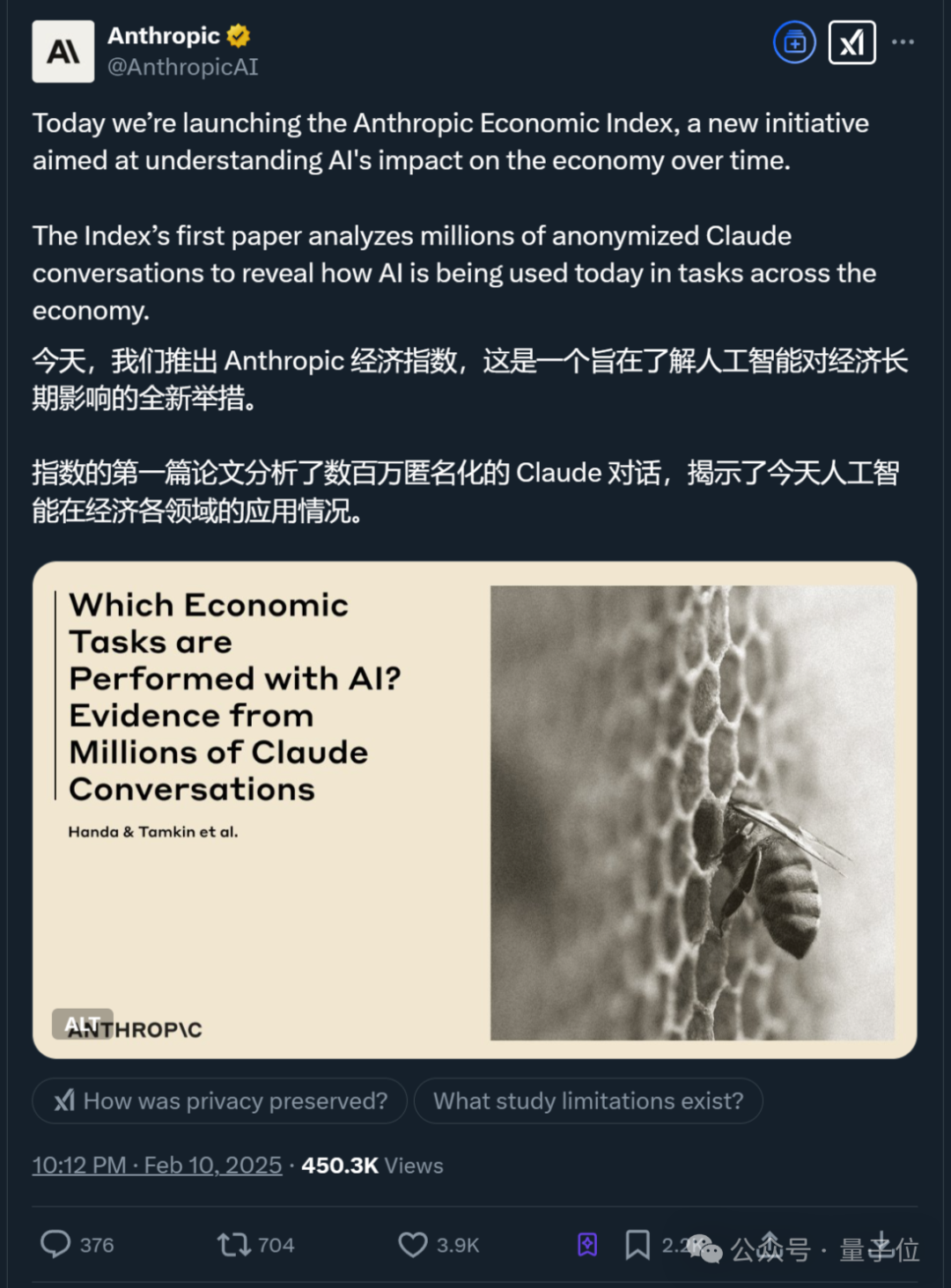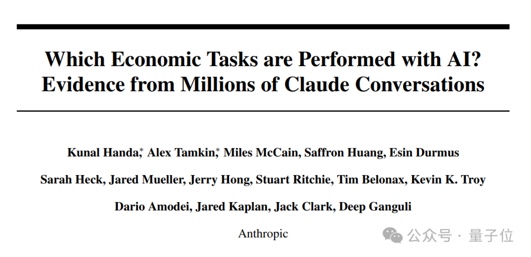 这一次,他们不仅推出The Anthropic Economic Index(用来理解AI对经济影响的指数),还公开了第一篇论文,里面包含大量观察结论: