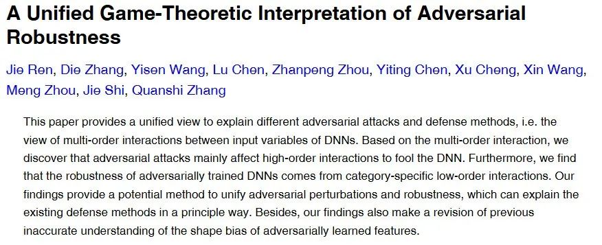 图注:张拳石在Neurips 2021发表论文“A Unified Game-Theoretic Interpretation of Adversarial Robustness”提供了一个统一视角,从深度神经网络输入变量间的多阶交互出发,解释了各种对抗攻击和防御方法。图注:张拳石2017年发表论文“Interpretable Convolutional Neural Networks”,将传统的卷积神经网络(CNN)改造成可解释的CNN,以便理解CNN高层卷积层中的知识表示。李梦佳:随着模型规模和数据量的增长,可解释性研究面临什么新挑战?张拳石:虽然神经网络规模不断扩大,但不同研究方向面临的挑战各不相同。在我们的研究方向上,我们发现了一个有趣现象。大模型的参数量与其简洁性之间存在特殊关系:参数量越多,优化越充分,其内部表征反而越简洁。具体表现为,我们可以用更稀疏的特征交互来解释神经网络的输出结果。相反,当模型参数量较小或出现过拟合时,需要大量复杂的特征交互才能解释其行为。因此,在某种意义上,我们不能说我们的解释与模型的参数完全无关。相反,随着模型参数量的增大,我们更关注的是整个黑盒模型等效的一种解释方式,而不是具体去研究神经网络内部有多少层,或者参数是如何具体运作的,也不关注它的具体结构。优秀的大模型往往表现在:它能够有效过滤掉噪声和不可靠的交互信息,同时学习到更多有意义的交互关系。李梦佳:在未来 3 到 5 年内,哪些重大成果和变革可能会出现?张拳石:交互式学习将会成为一个重要突破。这个判断基于两个方面:首先是技术基础。我们在可解释性方面已经有了理论保障,可以客观地解释模型决策。具体来说,基于“无限拟合性”和“稀疏性”这两个性质,我们可以通过交互、测量等方式,对神经网络的输入部分进行等效建模,进而可靠地解释其内部决策逻辑。基于这个基础,我们有望实现交互式学习。这种学习方式不同于传统的端到端训练,而是更类似于人与人之间的交流。当然,如何通过现有技术来有效提升神经网络可解释性,这不仅是一个工程问题,更是一个理论问题。我们需要从理论层面推导出可靠的训练方法。其次,在工程应用或产业发展方面,大模型的训练成本已经高到难以让大众所承受的程度。因此,我们迫切需要寻找新的突破口,而“交互式学习”恰好可能满足这方面的需求,在工程和产业领域拥有重要意义。
