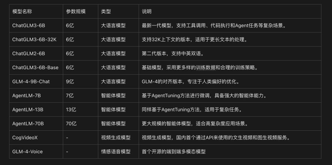 2024年推出的基座模型GLM-4-Plus、Agent模型AutoGLM、推理模型GLM-Zero等,性能比肩OpenAI同类产品,并在多模态和长文本推理场景中表现突出。
