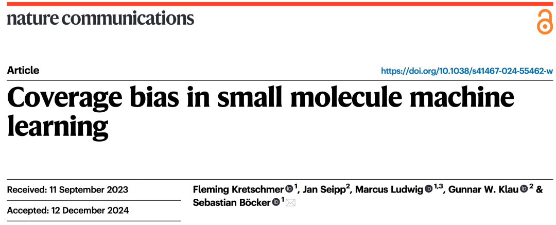 Kretschmer, F., Seipp, J., Ludwig, M., Klau, G. W., & Böcker, S. (2025). Coverage bias in small molecule machine learning. Nature Communications, 16(1), 554.
