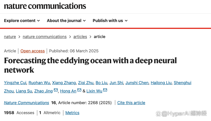 相关研究成果以「Forecasting the Eddying Ocean with a Deep Neural Network」为题,在线发表于 Nature Communications。