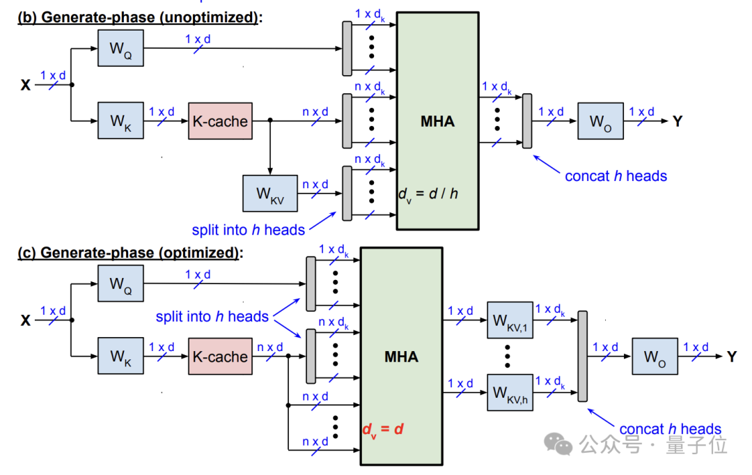 它以标准多头注意力(MHA)为基准,对其中的value缓存处理过程进行了调整,实现了更少的内存占用。