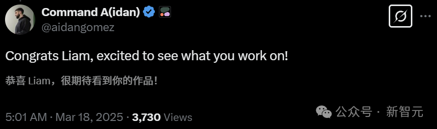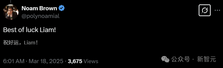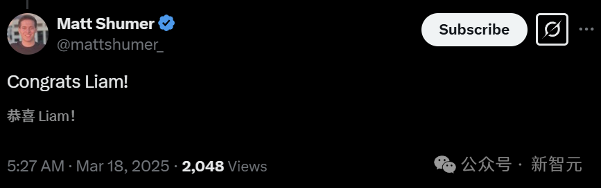 作为后训练部门负责人,Liam Fedus主要进行ChatGPT、API和AI智能体底层模型的研究与开发工作。此前,他就职于谷歌大脑,专注于通过专家混合系统(Mixtures of Experts)技术来优化神经网络效率。2022年,他正式入职OpenAI,初期作为核心开发人员加入强化学习(RL)团队,是ChatGPT的共同创造者之一,主要负责数据处理和模型评估工作。期间,他主导了多个重要模型(包括4o、o1-mini、o1-preview等)的后训练研发工作。2024年10月,Fedus接替了的Barret Zoph的职位,晋升为后训练团队负责人。当时首席技术官Mira Murati和首席研究官Bob McGrew也一起离职。Fedus获得了MIT物理学学士学位(期间参与了一个定向暗物质探测器项目:DMTPC),以及剑桥大学物理学学士学位。2016年,他获得了加州大学圣迭戈分校基本粒子物理学的硕士学位,导师是David Meyer和Gary Cottrell。随后,他又在蒙特利尔大学获得了计算机科学博士学位,师从Yoshua Bengio和Hugo Larochelle。根据Google Scholar,Fedus最有影响力的一些研究,包括GPT-4、指令微调scaling。他还在谷歌曾参与了著名的「大模型涌现能力」、以及Palm、1.6万亿参数Switch Transformers模型的研发。评论区,AI大佬们纷纷为William Fedus送上祝福。https://www.theinformation.com/briefings/openai-post-training-head-departs?rc=epv9gihttps://x.com/LiamFedus/status/1901740085416218672