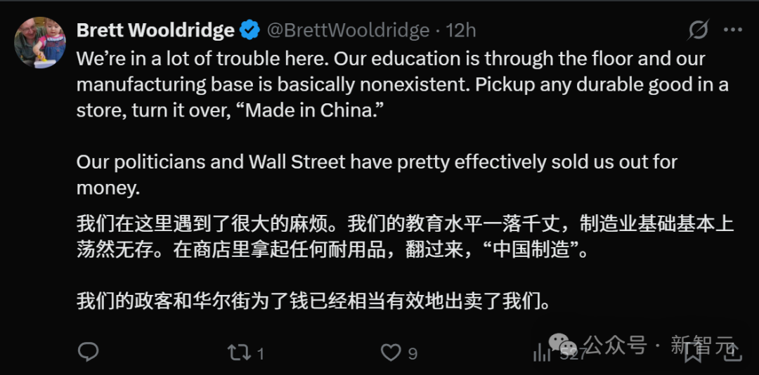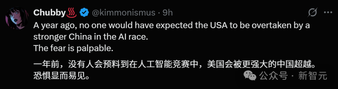 某AI大V如是说:一年前,没有人会预料到,在AI竞赛中,美国竟会被更强大的中国超越。如今,这种恐慌已经弥漫开来,更加显而易见。
