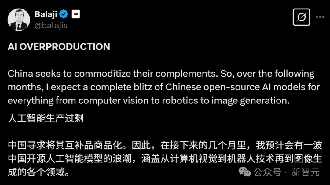 【新智元导读】如今,美国AI社区许多人已公认:接下来几个月,中国将会出现一波开源AI模型的浪潮!很多业内人士和大V干脆陷入了「冷战2.0」恐慌,呼吁要开放无限的能源、无限的算力和更简单的立法。LeCun则表示,DeepSeek击败美国,其实不过是中国内部竞争的副产品而已。