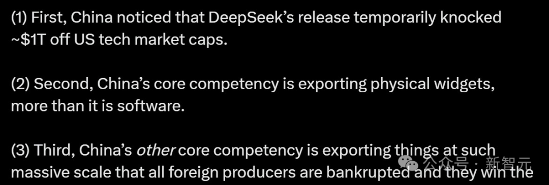 1.中国注意到,DeepSeek的发布曾一度让美国科技公司的市值蒸发了大约一万亿美元。