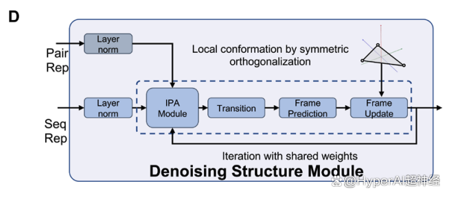 接下来,DRfold2 采用去噪 RNA 结构模块 (DRSM) 以端到端方式生成 RNA 构象 ,如下图 D: