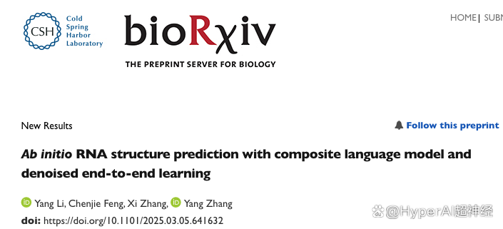 相关成果以「Ab initio RNA structure prediction with composite language model and denoised end-to-end learning」为题已发表于预印本平台 bioRxiv。