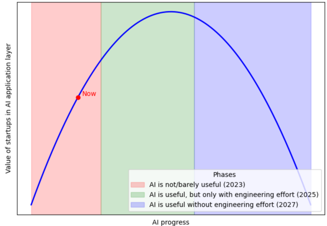 图 14:AI 应用层初创公司预期价值随时间变化表,分三个阶段