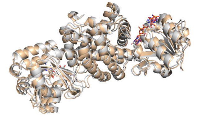 图5. IR-G36 WT(灰色)的结构和IR-G36 M5(小麦色)的结构重叠