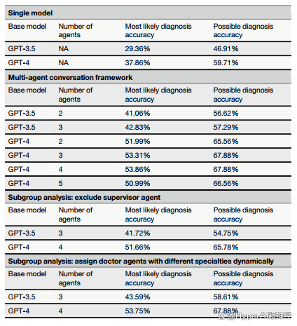 例如,研究团队比较了 MAC 框架分别采用 GPT-4 和 GPT-3.5 作为基础模型时的性能差异。结果发现,使用 GPT-3.5 或 GPT-4 作为基础模型的 MAC 表现明显优于其各自的独立版本,换言之,与单智能体模型相比,MAC 的诊断能力大大增强。此外,当用作 MAC 的基础模型时,GPT-4 被证明优于 GPT-3.5,这意味着,更强大的基础模型可能会带来更好的整体性能。