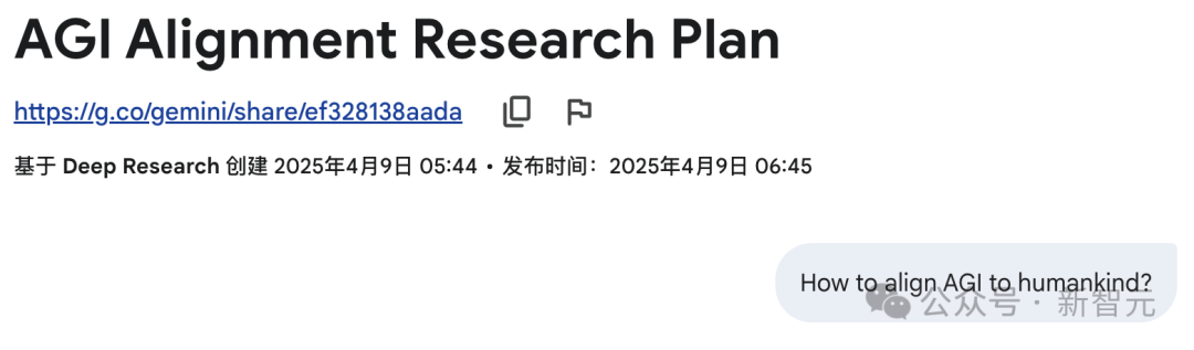 另一位AI大佬Kol Tregaskes提供一个话题——如何让AGI与人类价值观对齐,谷歌DR在极短时间内,直出46页报告。