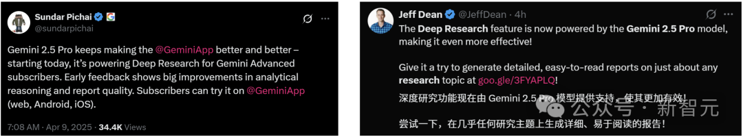 谷歌CEO劈柴哥转发力挺。首席科学家、Gemini负责人Jeff Dean也出来为Deep Research站台。