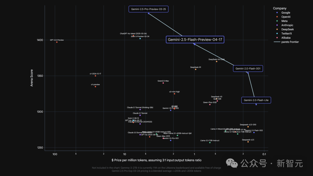 另外从下图中可看出,在同类模型中,2.5 Flash 以超高性价比领跑,兼具最优性能和极低成本的优势。