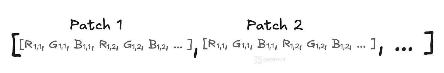 假设您有一个 16×16 的影像块(256 像素)。每个像素有 3 个值 (RGB),因此此补丁是一个 16×16×3 块。16×16×3 = 768 个值→变为长度为 768 的一维向量。所以这就像从左上角到右下角读取每个 RGB 值,然后将它们按顺序放在一个长列表中。