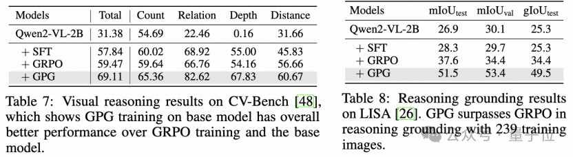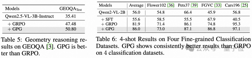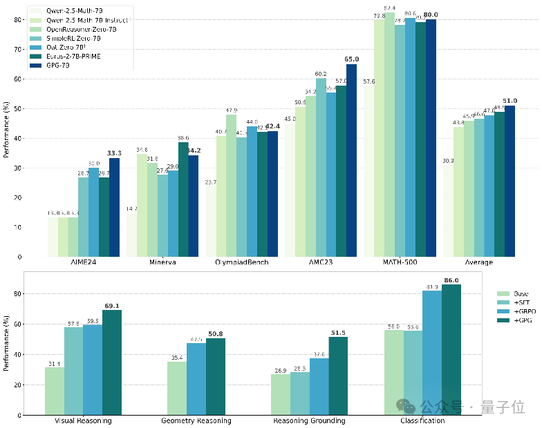 单模态多模态任务SOTA验证 :在数学推理、视觉理解、跨模态推理等任务中,GPG性能全面超越现有方法,验证其通用性与鲁棒性。