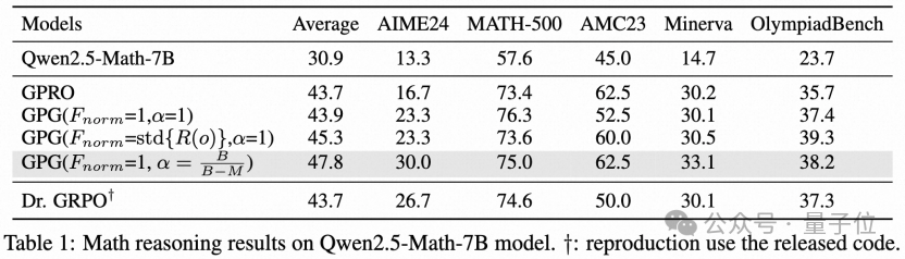 ,但是作者发现它无法明显超过GRPO方法。见下表: