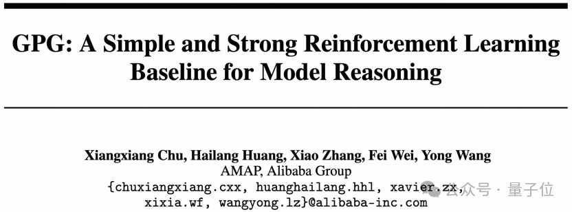 来自阿里-高德地图的团队提出了一种相当简单的强化学习训练新方法:组策略梯度优化GPG (Group Policy Gradient)。