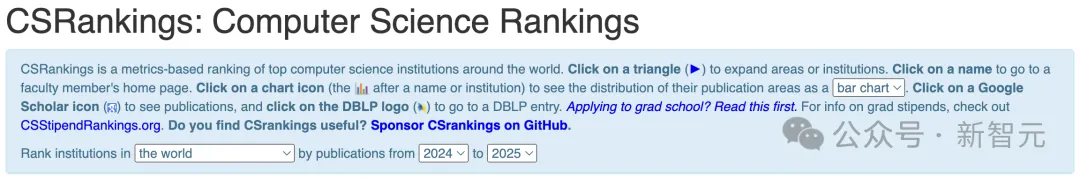 地址:https://csrankings.org/#/fromyear/2014/toyear/2025/index?all&world