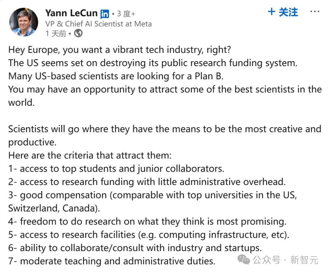 图灵三巨头之一的Meta首席AI科学家Yann LeCun,直接发出警告:特朗普此举,或将彻底摧毁美国的公共研究资助体系。