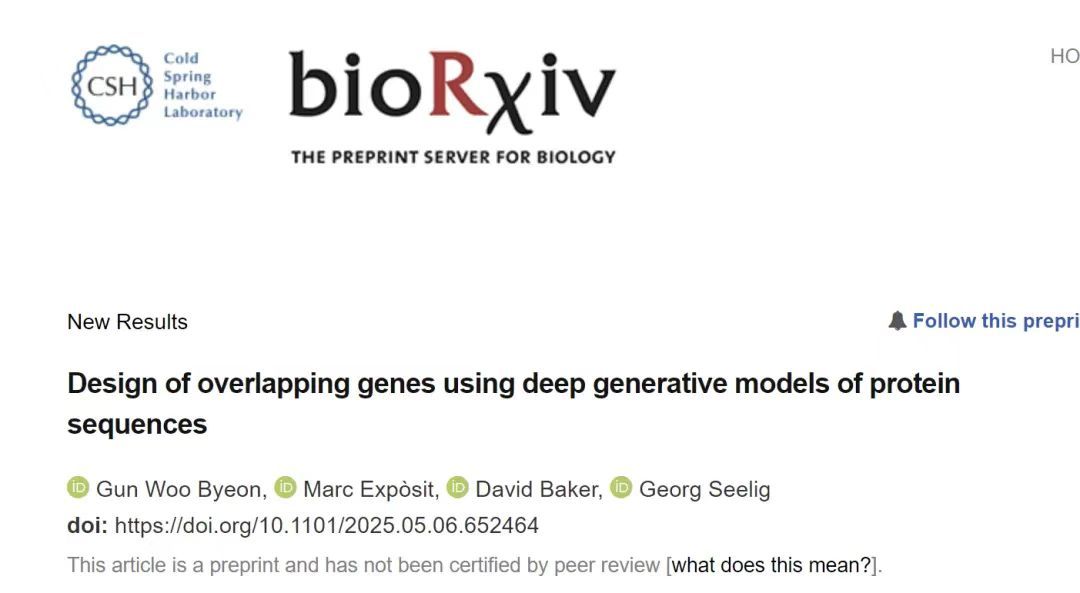 相关研究成果以「Design of overlapping genes using deep generative models of protein sequences」为题,已在 bioRxiv 发表预印本。