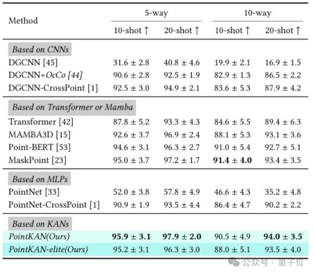 此外团队还提出PointKAN-elite版本,使用Efficient-KANs结构,在保持准确率的同时显著降低参数量。