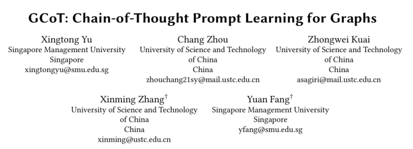 基于此,来自新加坡管理大学和中国科学技术大学的研究者们提出了GCoT——首个应用于无文本图数据的类思维链提示学习框架。