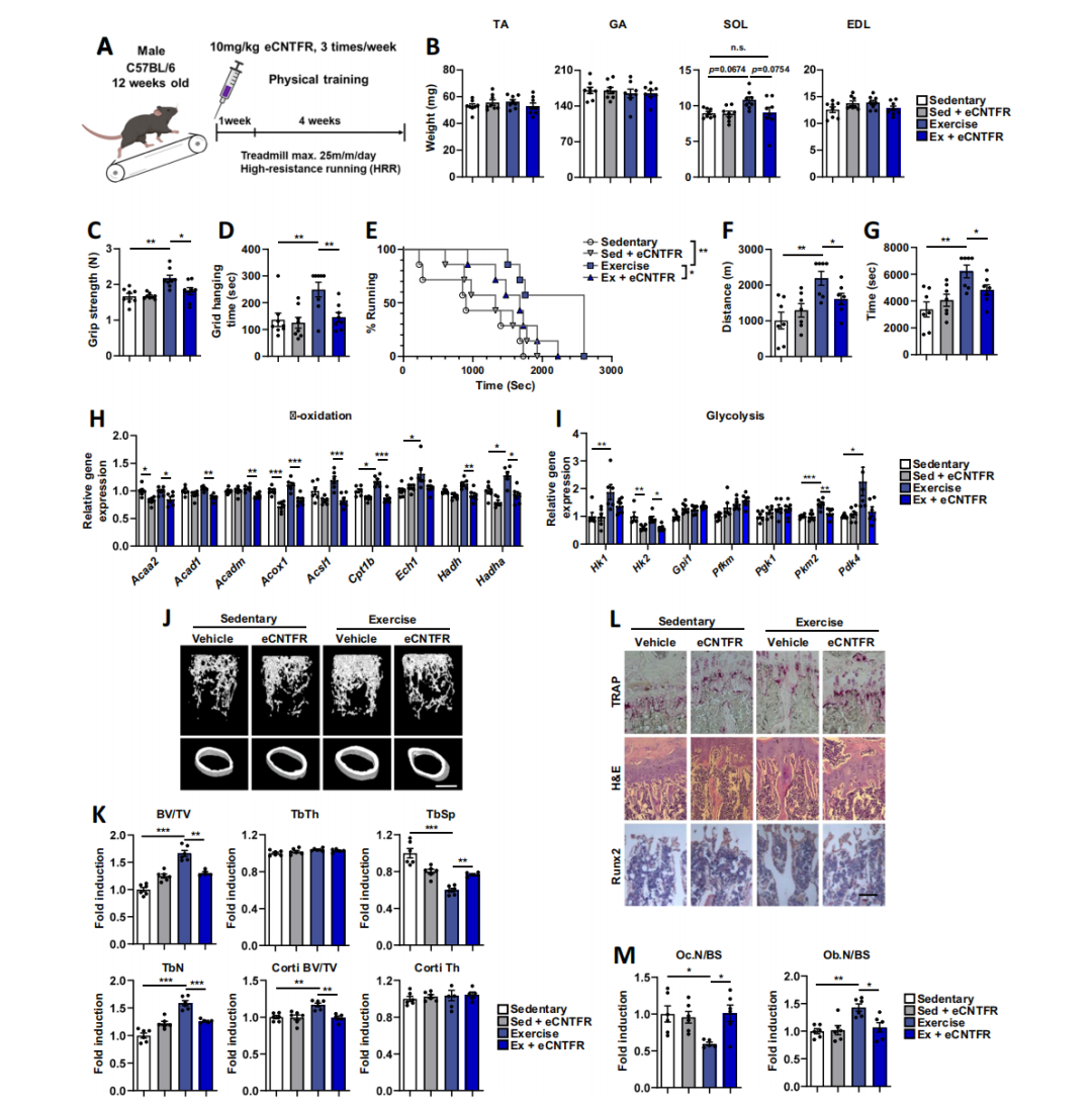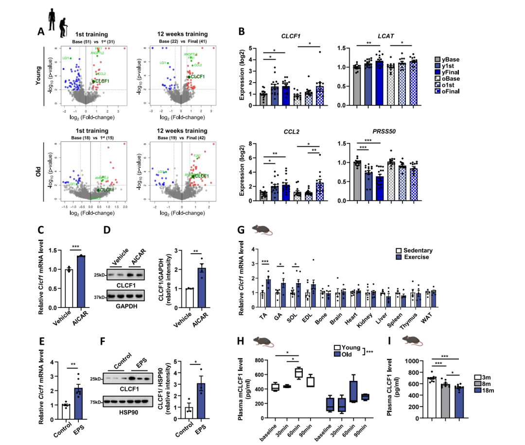 首先通过分析个体运动前后肌肉组织中分泌蛋白谱的变化,研究团队关注到CLCF1与肌肉健康存在潜在联系。