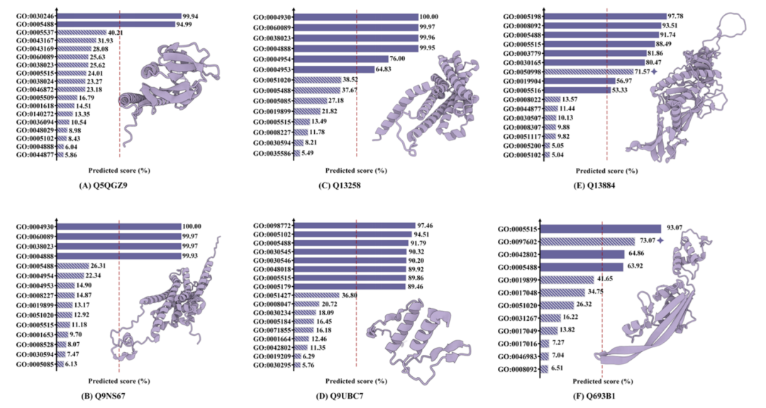 此外,在功能预测的可解释性研究中,模型也展现出从数千条 GoTerms 注释中精准识别 10 余种蛋白质功能的卓越能力。此外,团队通过文献调研发现,模型预测错误但却赋予高置信度的案例,实际在一些研究中已有记载,表明这些案例存在因数据集版本滞后导致误判的可能性。这一发现凸显了 AI 模型在挖掘新型蛋白质功能方面的潜力。