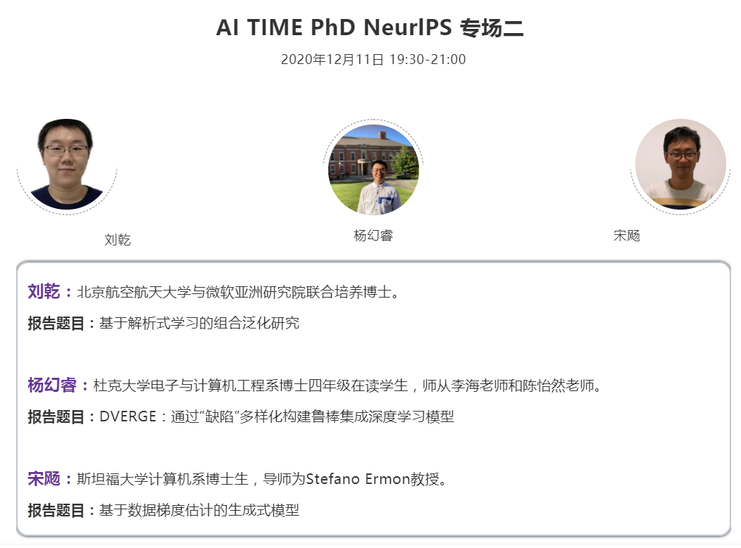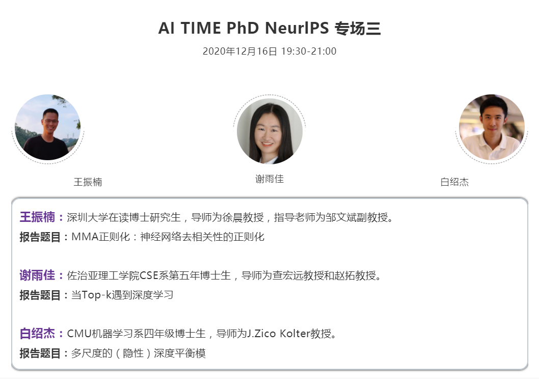 直播结束后我们会邀请讲者在微信群中与大家答疑交流,请添加“AI TIME小助手(微信号:AITIME_HY)”,回复“nips”,提前进入“NeurIPS 2020 交流群”!