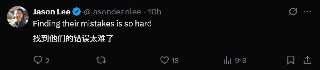 而且AI相比较人类,在计算和数据处理方面能力更强,也更不容易出错误。网友Jason Lee表示,找到AI的错误非常困难。