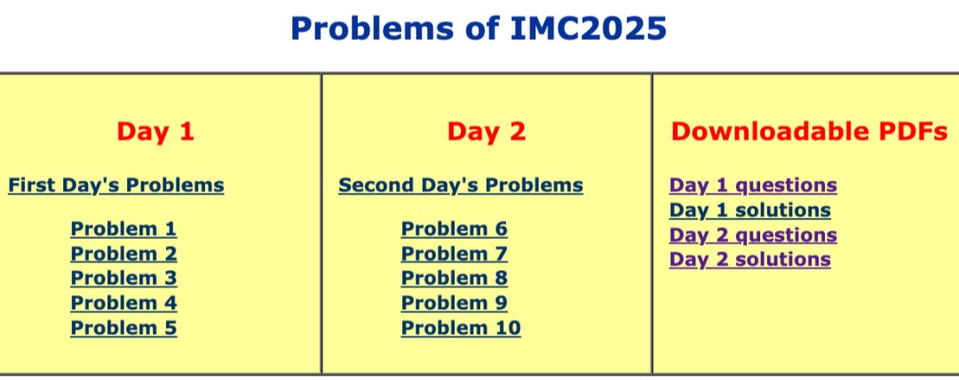 IMC竞程:https://www.imc-math.org.uk/?year=2025&item=problems