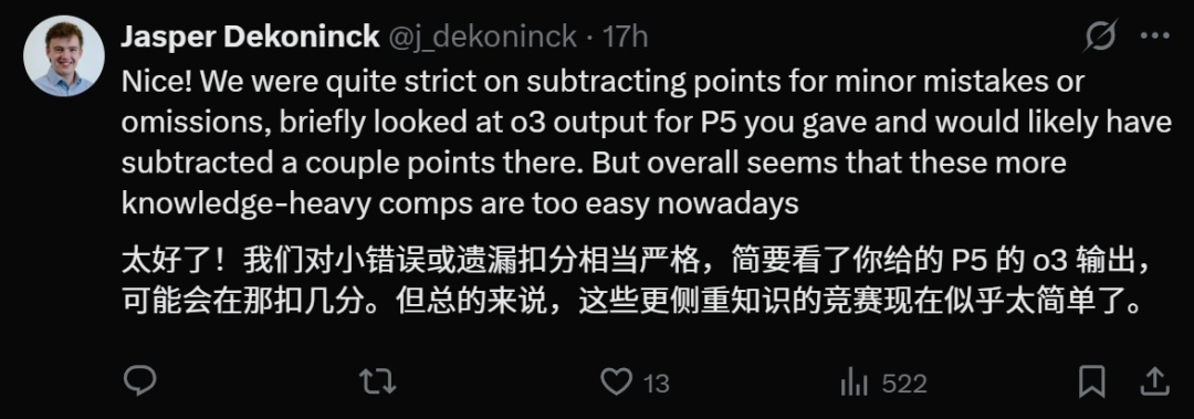 但网友Jasper Dekoninck认为o3输出的第5题答案似乎有些瑕疵,可能会被扣分。