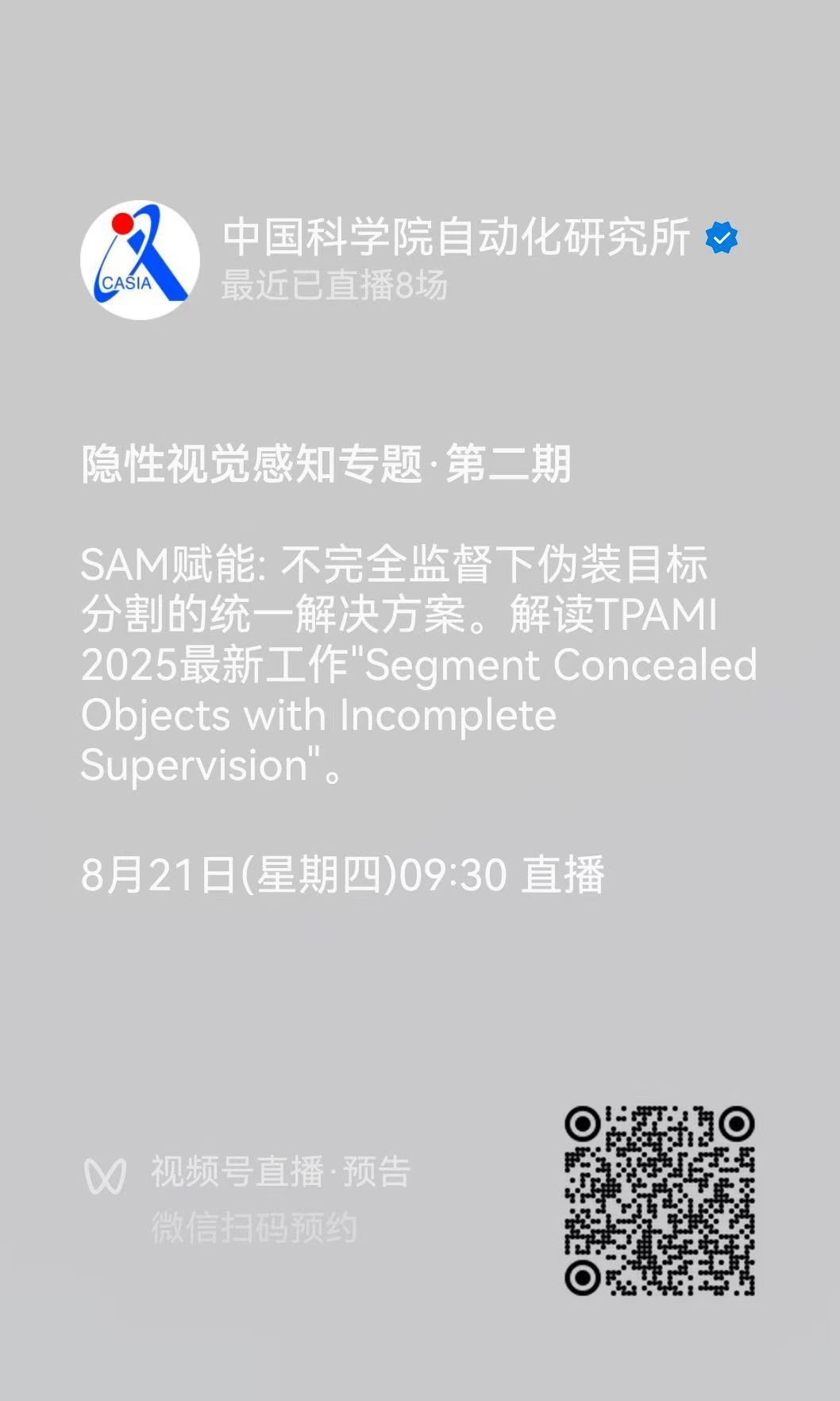 直播通道②:中国科学院自动化研究所 视频号