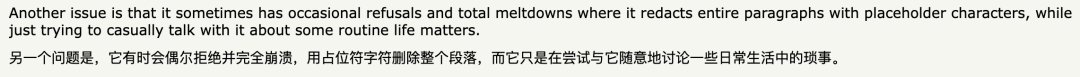 还有人说在和它谈论日常生活的琐事时,它偶尔会拒绝谈论,而有的时候会完全崩溃——