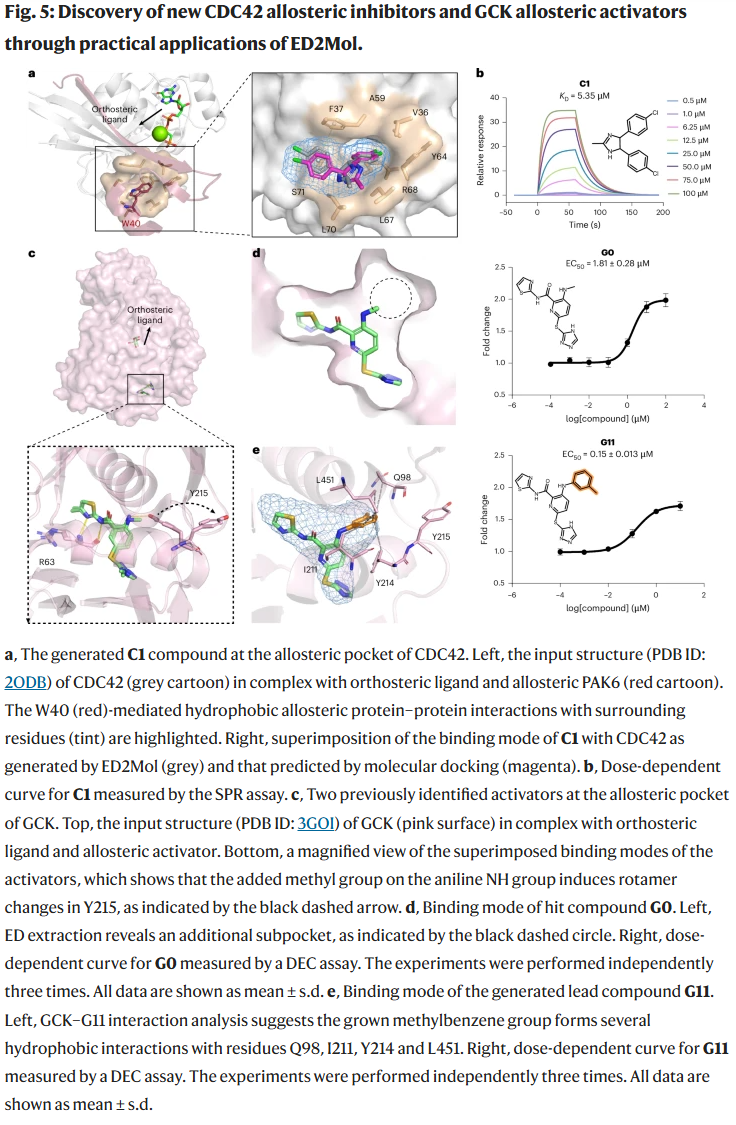这些实验验证表明,ED2Mol 能在正构与变构口袋中均产生具备实际活性的化合物。