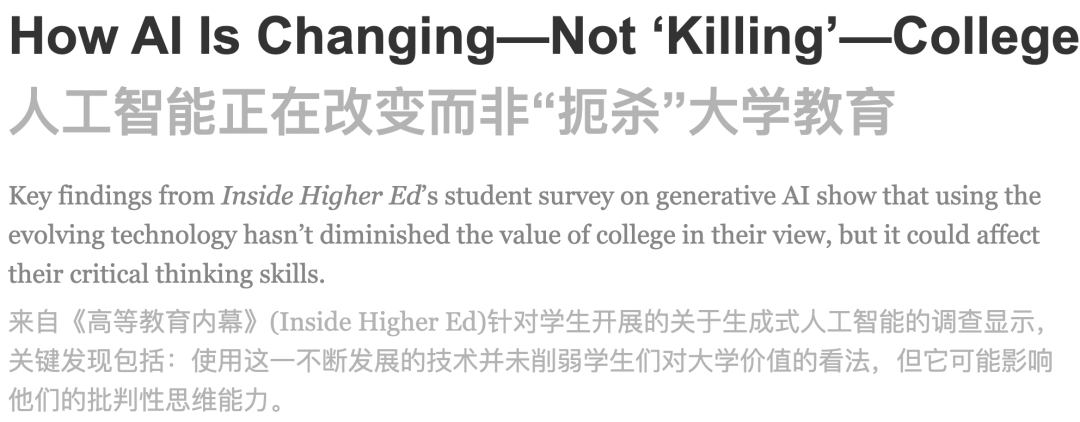 正因如此,「Inside Higher Ed」专门调查了生成式人工智能与教育。