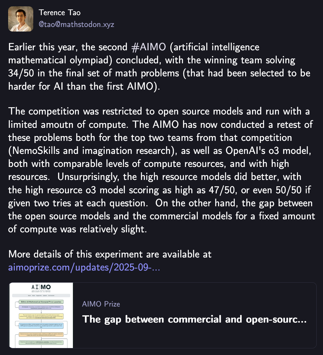 报告地址:https://aimoprize.com/updates/2025-09-05-the-gap-is-shrinking