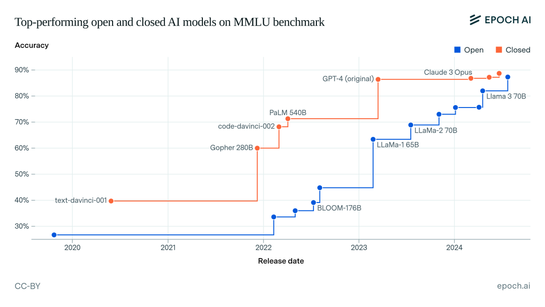 对于科学可复现性,确保开源模型广泛可得至关重要。但开源模型与闭源模型之间的性能差距到底有多大?