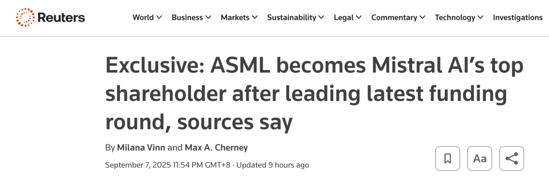 [1]https://www.reuters.com/world/europe/asml-becomes-mistral-ais-top-shareholder-after-leading-latest-funding-round-2025-09-07/