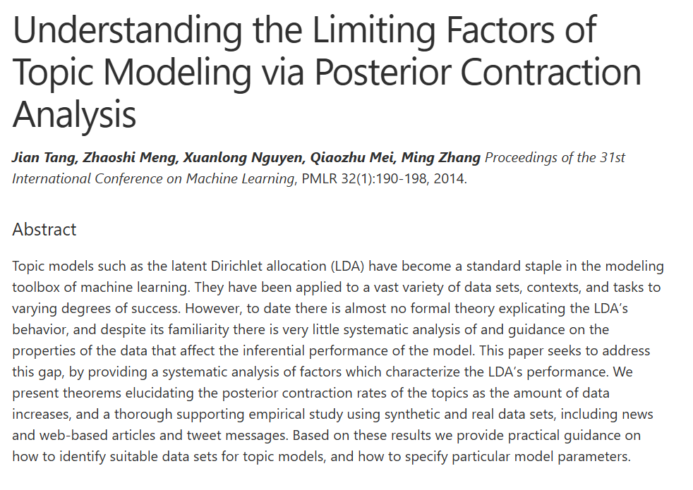 ICML 2014唯一Best Paper:《Understanding the Limiting Factors of Topic Modeling via Posterior Contraction Analysis》