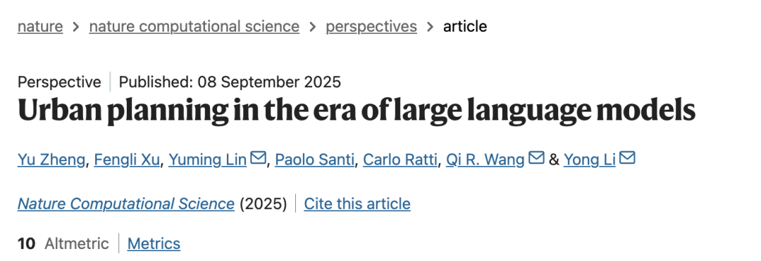 近日,由清华大学电子工程系城市科学与计算研究中心、建筑学院与麻省理工学院(MIT)感知城市实验室、美国东北大学等顶尖机构的学者组成的跨学科团队,在国际前沿期刊《自然·计算科学》上发表观点文章,首次系统性地提出了一个由大语言模型(LLM)驱动的智能城市规划框架。该框架将AI的强大计算、推理与生成能力,同人类规划师的专业经验与创造力深度融合,旨在将AI打造为人类的“智能规划助手”,共同应对现代城市规划中的复杂挑战,为实现更高效、创新和响应迅速的城市设计流程,开启了人机协同的新范式。
