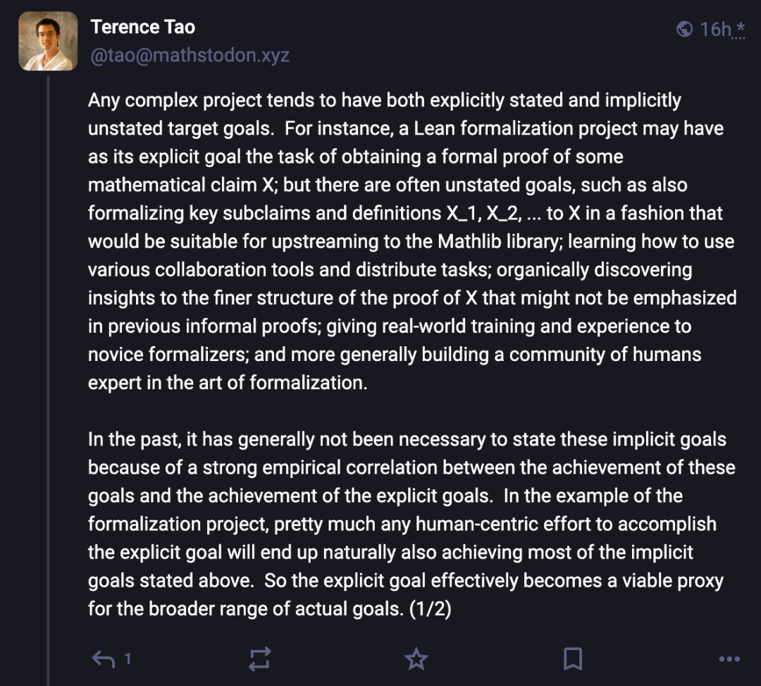而就在刚刚,陶哲轩本人在Mastodon上对形式化相关的问题做了一番解释(以下为陶哲轩的陈述)。