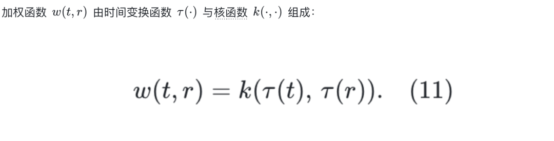 在这篇文章最终模型中,他们采用正切空间变换(tangent space transformation来有效拉伸时间域,从而得到具体的加权形式:
