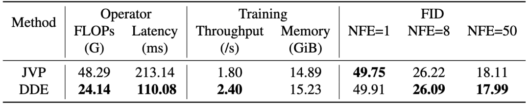 以MeanFlow和Short-cut Model为代表的既有方法通常依赖雅可比—向量乘积(JVP)来完成这一计算。