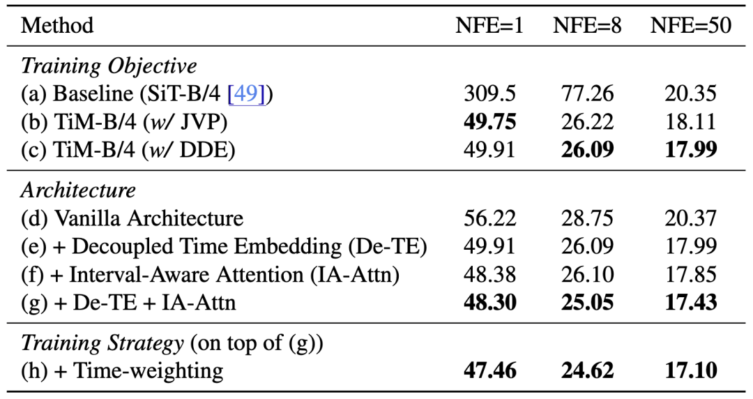 通过设计1和设计2,这篇文章提出的Transition Model将“在任意状态下,任意时间间隔内,与前状态之间的状态转移的动力学方程”作为训练目标,它就满足了兼得推理速度与高保真度质量的核心设计。