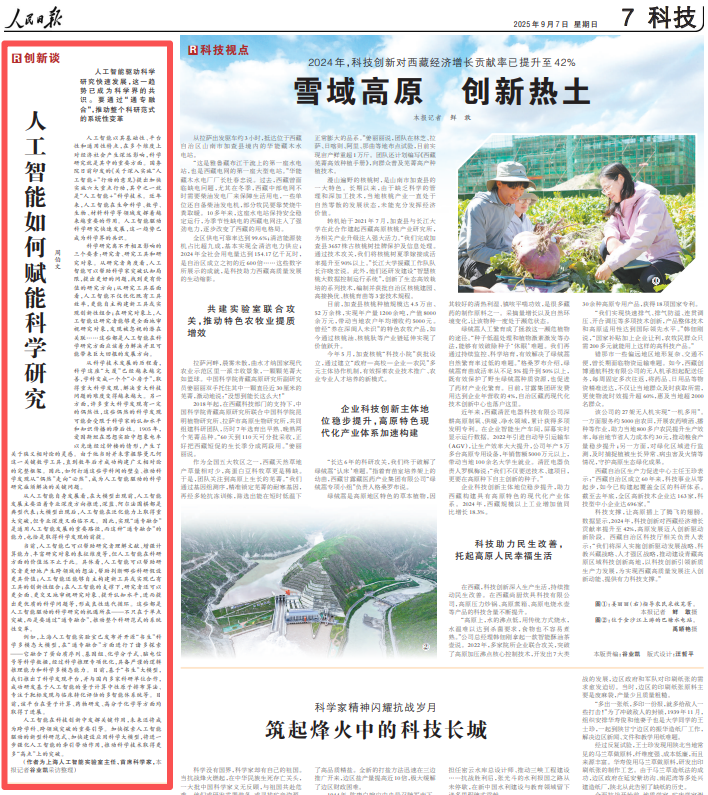 人工智能在科技创新中发挥关键作用,未来还将成为跨学科、跨领域突破的重要引擎。加快探索人工智能驱动的新型科研范式、加快建设应用科学大模型,将进一步强化人工智能的牵引带动作用,推动科学技术取得更多“高点”上的突破。
